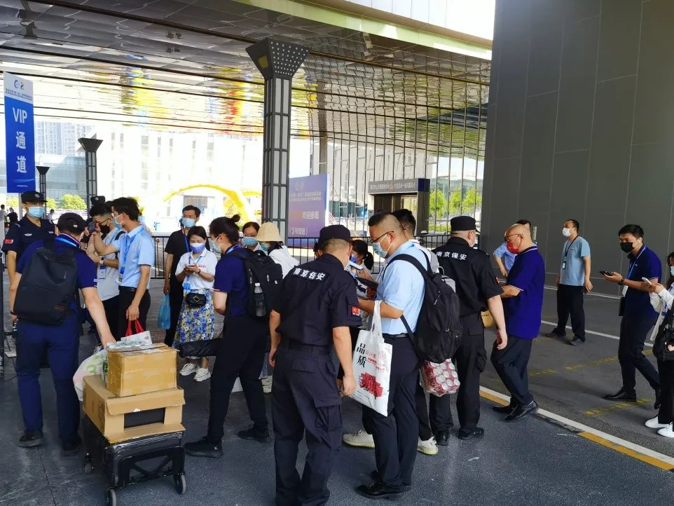 為做好此次展會的安保工作,按照當前疫情常態(tài)化防控政策和“控總量、防聚集、保安全”的總體要求,南京市保安服務有限公司超前謀劃、精心部署,安排大型活動部負責人提前勘查現(xiàn)場,結合現(xiàn)場可能出現(xiàn)的突發(fā)情況與各單位協(xié)調,逐一對安保工作細節(jié)及可能存在的問題進行分析研判,制定了詳細的應急保障方案。由于展會期間正值高溫酷暑,公司提前為執(zhí)勤保安隊員準備防暑慰問品,調整外場執(zhí)勤人員輪換班次,以防隊員中暑。